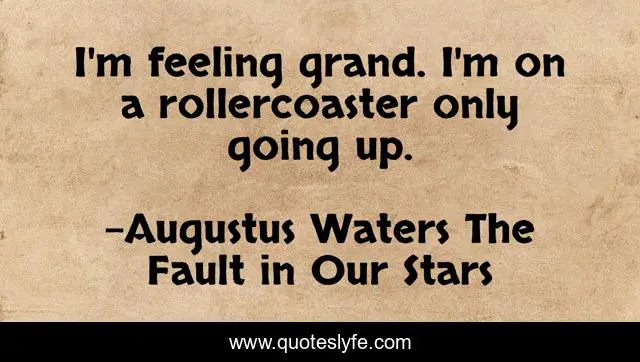 This page presents the quote "I'm feeling grand. I'm on a rollercoaster only going up.". Author of this quote is Augustus Waters The Fault in Our Stars. This quote is about the-fault-in-our-stars, optimistic,.