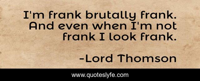 "Lord Thomson Quotes." Quoteslyfe.com, 2025. Fri. 05 Dec. 2025. <https://www.quoteslyfe.com/quote/I-m-frank-brutally-frank-And-even-268427>.
