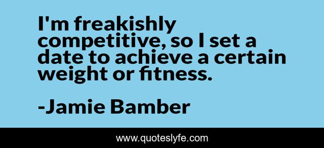 This page presents the quote "I'm freakishly competitive, so I set a date to achieve a certain weight or fitness.". Author of this quote is Jamie Bamber. This quote is about date, achieve, competitive,.