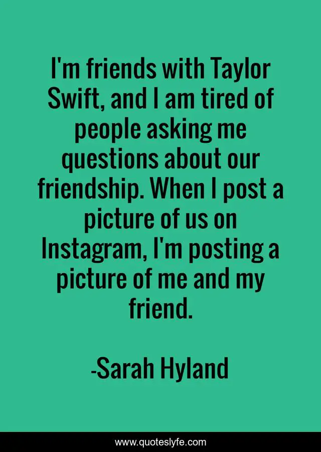 This page presents the quote "I'm friends with Taylor Swift, and I am tired of people asking me questions about our friendship. When I post a picture of us on Instagram, I'm posting a picture of me and my friend.". Author of this quote is Sarah Hyland. This quote is about me, friends,.