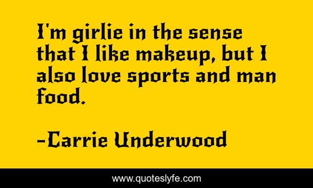 This page presents the quote "I'm girlie in the sense that I like makeup, but I also love sports and man food.". Author of this quote is Carrie Underwood. This quote is about food, love, affection, man,.
