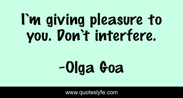 This page presents the quote "I’m giving pleasure to you. Don’t interfere.". Author of this quote is Olga Goa. This quote is about dark-romance, erotic-romance, love, series, romance, quotes, humor, passion, fateful-italian-passion,.