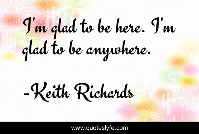 This page presents the quote "I'm glad to be here. I'm glad to be anywhere.". Author of this quote is Keith Richards. .