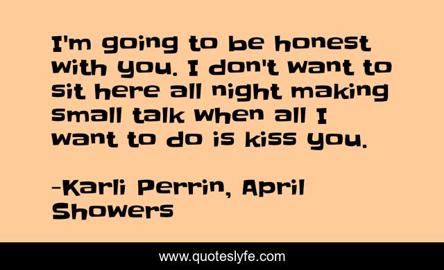 This page presents the quote "I'm going to be honest with you. I don't want to sit here all night making small talk when all I want to do is kiss you.". Author of this quote is Karli Perrin, April Showers. This quote is about romance, na, love, kiss, affection,.
