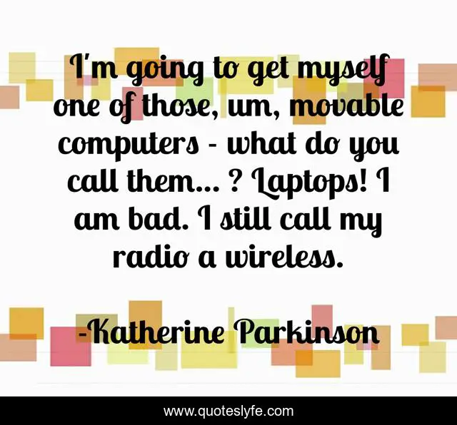 This page presents the quote "I'm going to get myself one of those, um, movable computers - what do you call them... ? Laptops! I am bad. I still call my radio a wireless.". Author of this quote is Katherine Parkinson. .