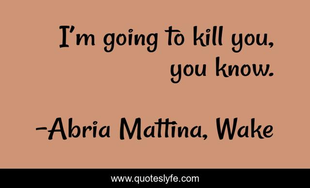 "Abria Mattina, Wake Quotes." Quoteslyfe.com, 2025. Sun. 07 Dec. 2025. <https://www.quoteslyfe.com/quote/I-m-going-to-kill-you-you-154621>.