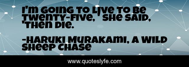 This page presents the quote "I'm going to live to be twenty-five, ' she said, 'then die.". Author of this quote is Haruki Murakami, A Wild Sheep Chase. This quote is about aging, suicide,.
