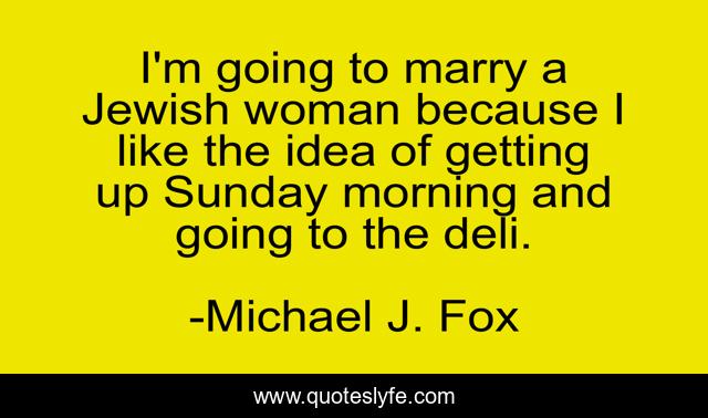 This page presents the quote "I'm going to marry a Jewish woman because I like the idea of getting up Sunday morning and going to the deli.". Author of this quote is Michael J. Fox. This quote is about funny, woman, comedy, idea,.