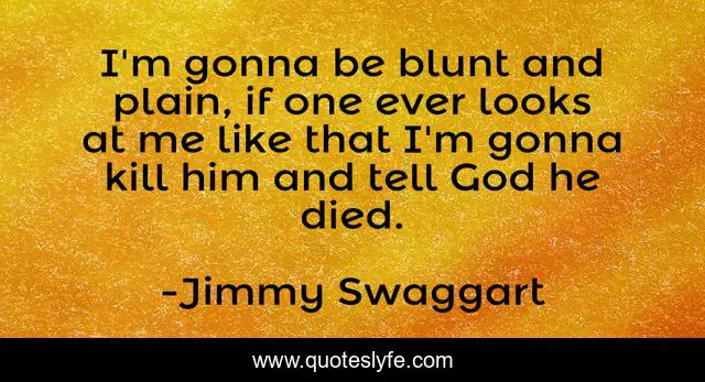 This page presents the quote "I'm gonna be blunt and plain, if one ever looks at me like that I'm gonna kill him and tell God he died.". Author of this quote is Jimmy Swaggart. This quote is about me, looks, him,.