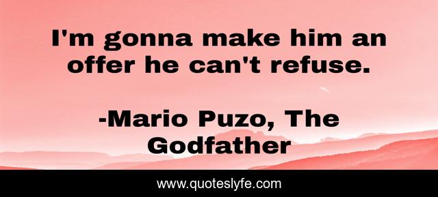 This page presents the quote "I'm gonna make him an offer he can't refuse.". Author of this quote is Mario Puzo, The Godfather. .
