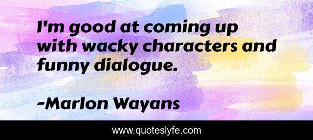 This page presents the quote "I'm good at coming up with wacky characters and funny dialogue.". Author of this quote is Marlon Wayans. This quote is about dialogue, good, up,.