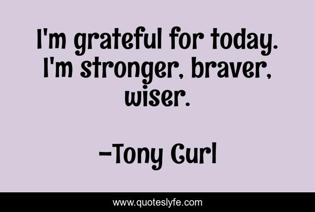 This page presents the quote "I'm grateful for today. I'm stronger, braver, wiser.". Author of this quote is Tony Curl. This quote is about gratitude, life, strength, new-day, wisdom, bravery,.