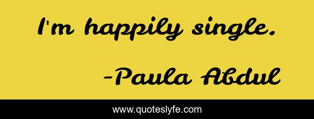 This page presents the quote "I'm happily single.". Author of this quote is Paula Abdul. This quote is about happily, single,.