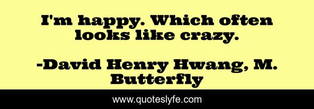 This page presents the quote "I'm happy. Which often looks like crazy.". Author of this quote is David Henry Hwang, M. Butterfly. .