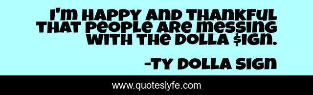This page presents the quote "I'm happy and thankful that people are messing with the Dolla $ign.". Author of this quote is Ty Dolla Sign. This quote is about happy, messing, people,.