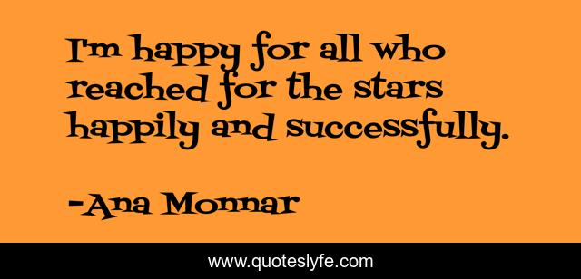This page presents the quote "I'm happy for all who reached for the stars happily and successfully.". Author of this quote is Ana Monnar. This quote is about achievements, happy, success, tenacity,.
