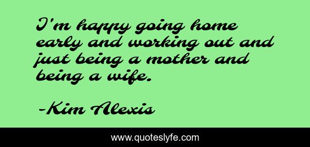 This page presents the quote "I'm happy going home early and working out and just being a mother and being a wife.". Author of this quote is Kim Alexis. This quote is about happy, mother, wife,.