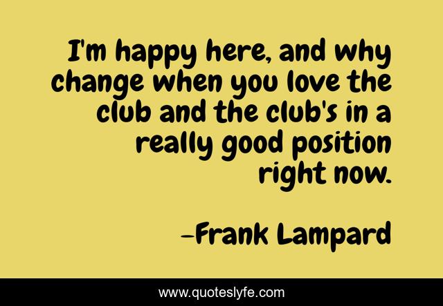 This page presents the quote "I'm happy here, and why change when you love the club and the club's in a really good position right now.". Author of this quote is Frank Lampard. This quote is about right, change, happy,.