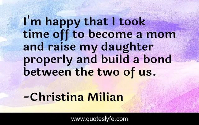 This page presents the quote "I'm happy that I took time off to become a mom and raise my daughter properly and build a bond between the two of us.". Author of this quote is Christina Milian. This quote is about time, daughter, happy,.