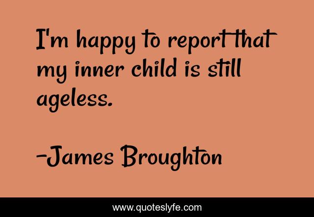 This page presents the quote "I'm happy to report that my inner child is still ageless.". Author of this quote is James Broughton. This quote is about happy, still, child,.