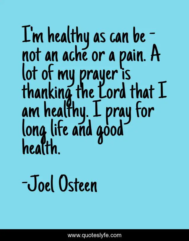 This page presents the quote "I'm healthy as can be - not an ache or a pain. A lot of my prayer is thanking the Lord that I am healthy. I pray for long life and good health.". Author of this quote is Joel Osteen. This quote is about life, good, pain,.