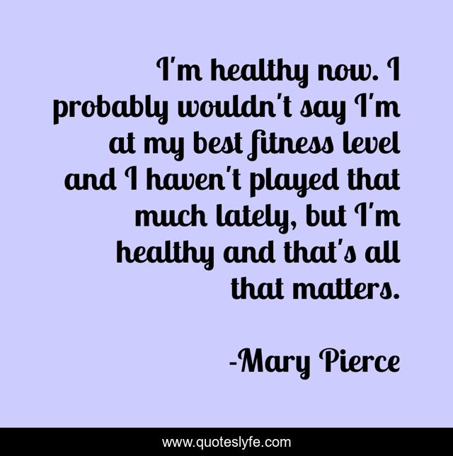 This page presents the quote "I'm healthy now. I probably wouldn't say I'm at my best fitness level and I haven't played that much lately, but I'm healthy and that's all that matters.". Author of this quote is Mary Pierce. This quote is about healthy, matters, best,.