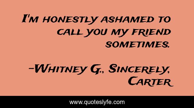 This page presents the quote "I'm honestly ashamed to call you my friend sometimes.". Author of this quote is Whitney G., Sincerely, Carter. This quote is about friends, friendship,.