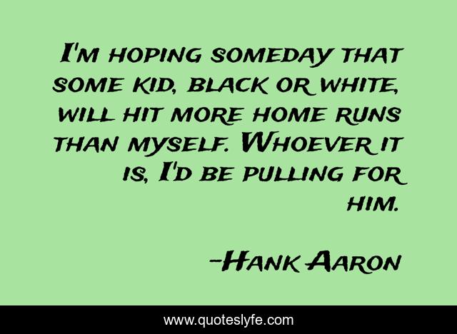 This page presents the quote "I'm hoping someday that some kid, black or white, will hit more home runs than myself. Whoever it is, I'd be pulling for him.". Author of this quote is Hank Aaron. This quote is about myself, black, kid,.