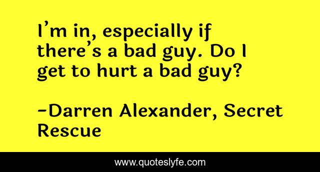 This page presents the quote "I’m in, especially if there’s a bad guy. Do I get to hurt a bad guy?". Author of this quote is Darren Alexander, Secret Rescue. This quote is about thriller, romantic-suspense,.