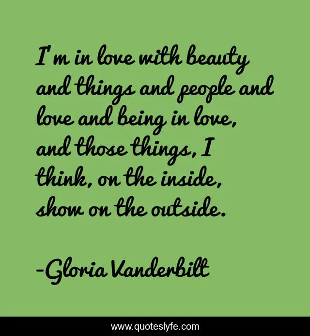 This page presents the quote "I'm in love with beauty and things and people and love and being in love, and those things, I think, on the inside, show on the outside.". Author of this quote is Gloria Vanderbilt. This quote is about love, think, affection, people,.