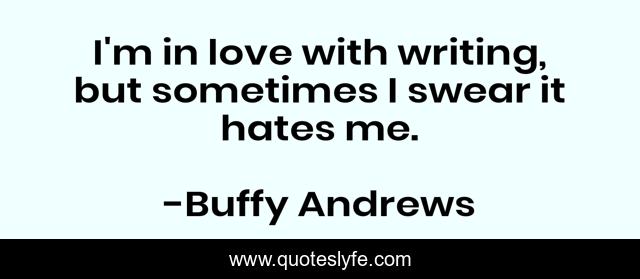 This page presents the quote "I'm in love with writing, but sometimes I swear it hates me.". Author of this quote is Buffy Andrews. This quote is about quotes, writers-on-writing, writers, writers-world, writers-life,.