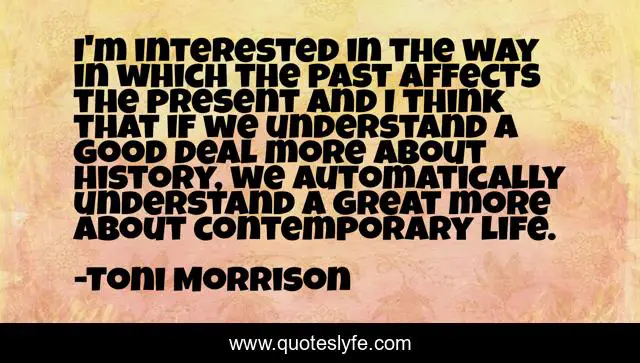 This page presents the quote "I'm interested in the way in which the past affects the present and I think that if we understand a good deal more about history, we automatically understand a great more about contemporary life.". Author of this quote is Toni Morrison. This quote is about history, inspiration,.