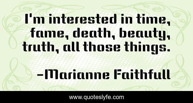 This page presents the quote "I'm interested in time, fame, death, beauty, truth, all those things.". Author of this quote is Marianne Faithfull. This quote is about beauty, truth, time,.