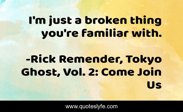 "Rick Remender, Tokyo Ghost, Vol. 2: Come Join Us Quotes." Quoteslyfe.com, 2025. Fri. 05 Dec. 2025. <https://www.quoteslyfe.com/quote/I-m-just-a-broken-thing-you-20378>.