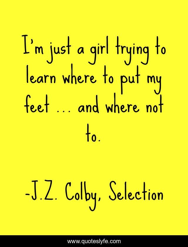 This page presents the quote "I'm just a girl trying to learn where to put my feet ... and where not to.". Author of this quote is J.Z. Colby, Selection. .