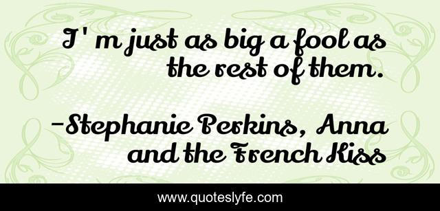 This page presents the quote "I'm just as big a fool as the rest of them.". Author of this quote is Stephanie Perkins, Anna and the French Kiss. This quote is about ya, ya-lit, ya-contemporary, ya-contemporary-romance,.