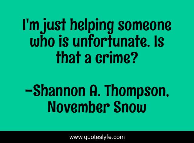 This page presents the quote "I'm just helping someone who is unfortunate. Is that a crime?". Author of this quote is Shannon A. Thompson, November Snow. This quote is about help, unfortunate, helping-others,.