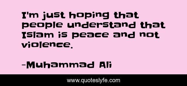 This page presents the quote "I'm just hoping that people understand that Islam is peace and not violence.". Author of this quote is Muhammad Ali. This quote is about violence, people, islam,.