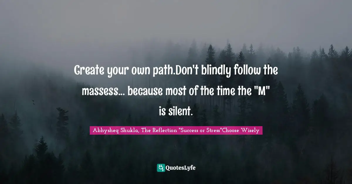 Create your own path.Don't blindly follow the massess... because most of the time the "M" is silent.