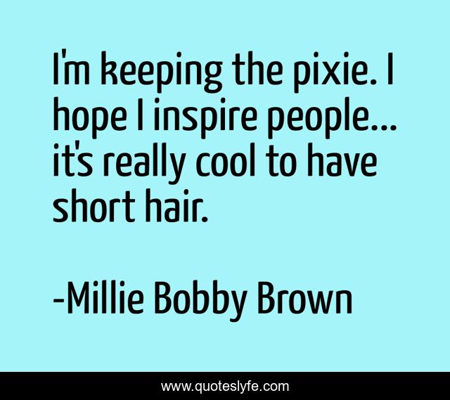 This page presents the quote "I'm keeping the pixie. I hope I inspire people... it's really cool to have short hair.". Author of this quote is Millie Bobby Brown. This quote is about short, inspire, hope,.