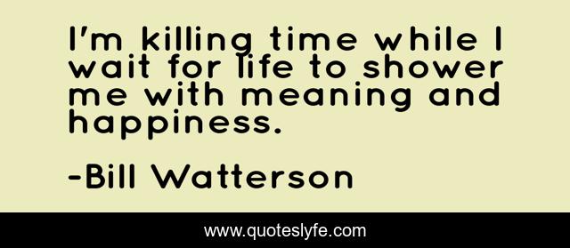 This page presents the quote "I'm killing time while I wait for life to shower me with meaning and happiness.". Author of this quote is Bill Watterson. This quote is about calvin-and-hobbes, humor, life,.