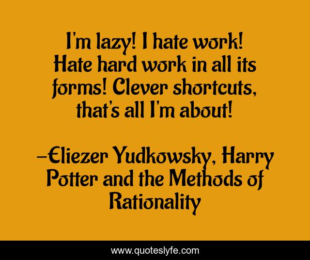 "Eliezer Yudkowsky, Harry Potter and the Methods of Rationality Quotes." Quoteslyfe.com, 2025. Fri. 05 Dec. 2025. <https://www.quoteslyfe.com/quote/I-m-lazy-I-hate-work-Hate-229211>.