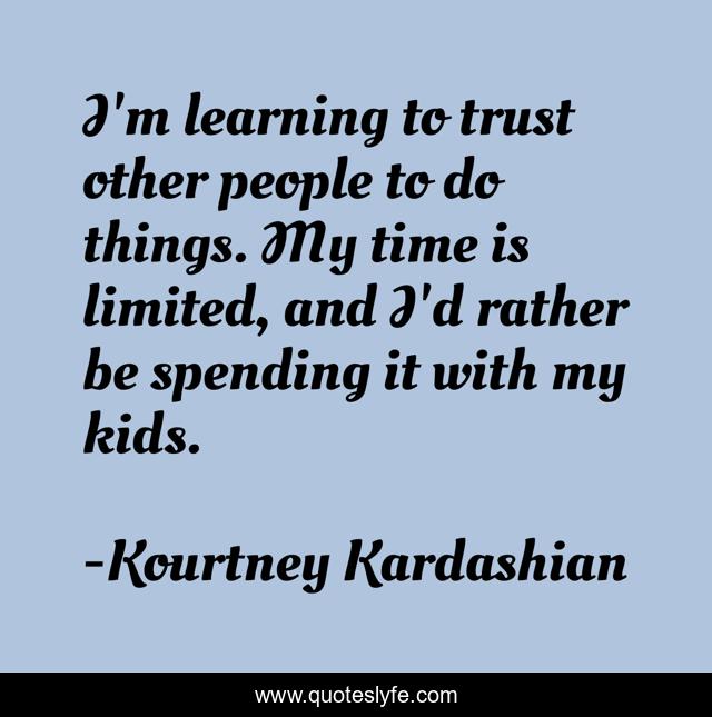 This page presents the quote "I'm learning to trust other people to do things. My time is limited, and I'd rather be spending it with my kids.". Author of this quote is Kourtney Kardashian. This quote is about time, learning, people,.