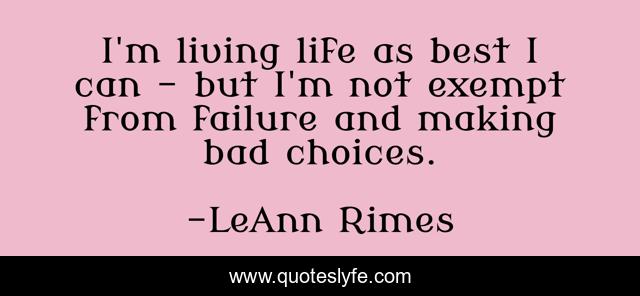 This page presents the quote "I'm living life as best I can - but I'm not exempt from failure and making bad choices.". Author of this quote is LeAnn Rimes. This quote is about life, best, choices,.