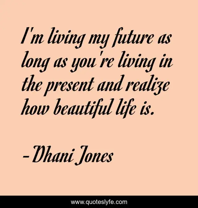 This page presents the quote "I'm living my future as long as you're living in the present and realize how beautiful life is.". Author of this quote is Dhani Jones. This quote is about beautiful, life, long,.