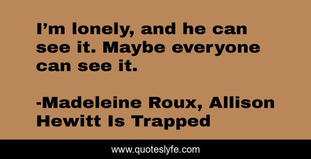 "Madeleine Roux, Allison Hewitt Is Trapped Quotes." Quoteslyfe.com, 2025. Sun. 07 Dec. 2025. <https://www.quoteslyfe.com/quote/I-m-lonely-and-he-can-see-160083>.