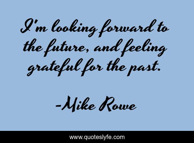 This page presents the quote "I'm looking forward to the future, and feeling grateful for the past.". Author of this quote is Mike Rowe. This quote is about past, grateful,.