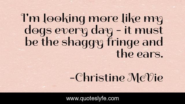 This page presents the quote "I'm looking more like my dogs every day - it must be the shaggy fringe and the ears.". Author of this quote is Christine McVie. This quote is about looking, every day, day,.