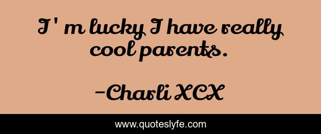 This page presents the quote "I'm lucky I have really cool parents.". Author of this quote is Charli XCX. This quote is about parents, lucky, really,.