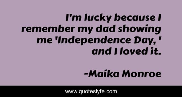 This page presents the quote "I'm lucky because I remember my dad showing me 'Independence Day, ' and I loved it.". Author of this quote is Maika Monroe. This quote is about me, day, remember,.